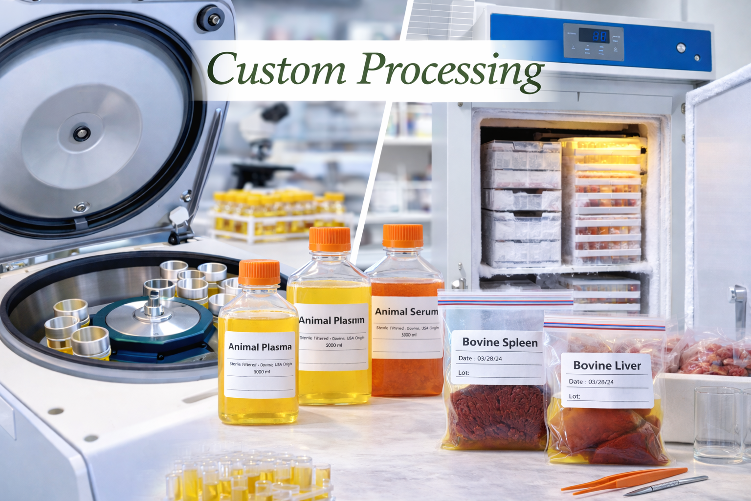 Aries is able to alter the production workflow to accommodate specific actions required to meet a customer’s needs. Including heat-inactivated, sterile filtered, gamma-irradiated. Formulations:Additives, buffers, concentration adjustments